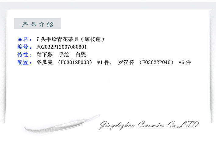7頭手繪青花茶具(纏枝蓮)