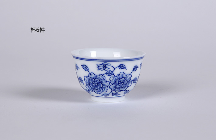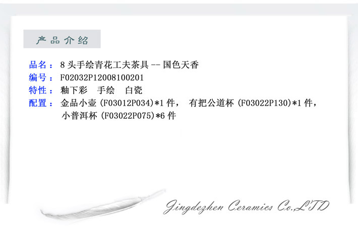 8頭手繪青花工夫茶具國色天香