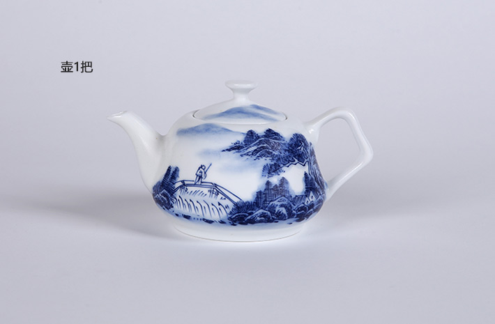 8頭手繪青花茶具--山水