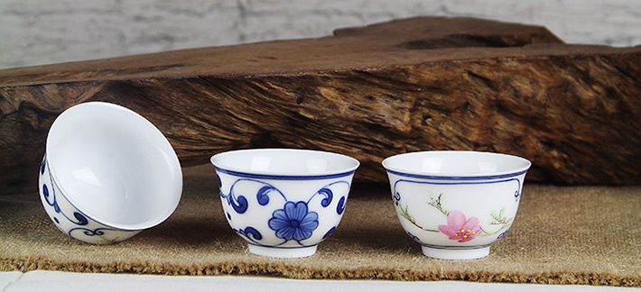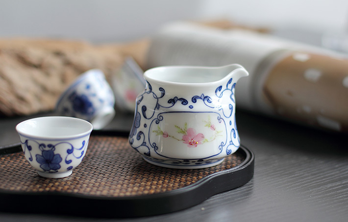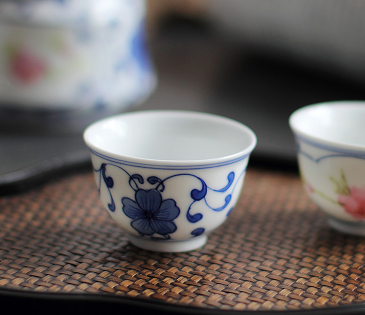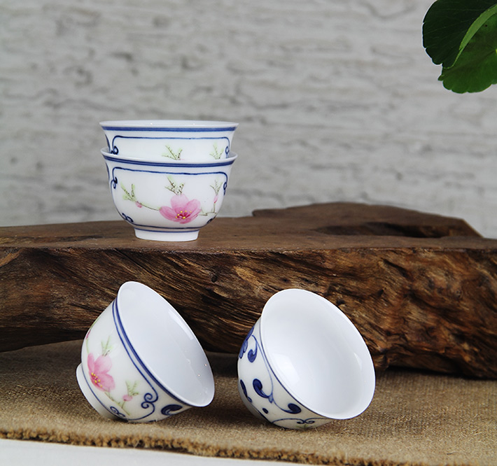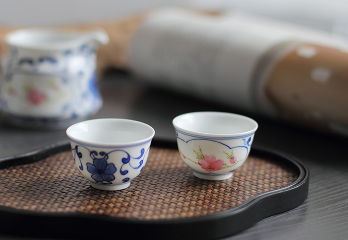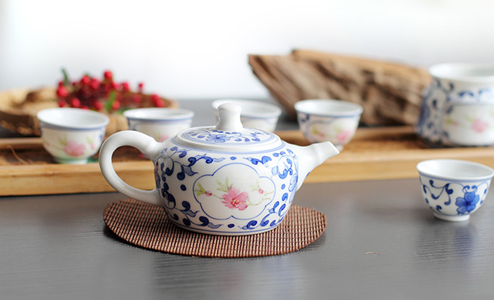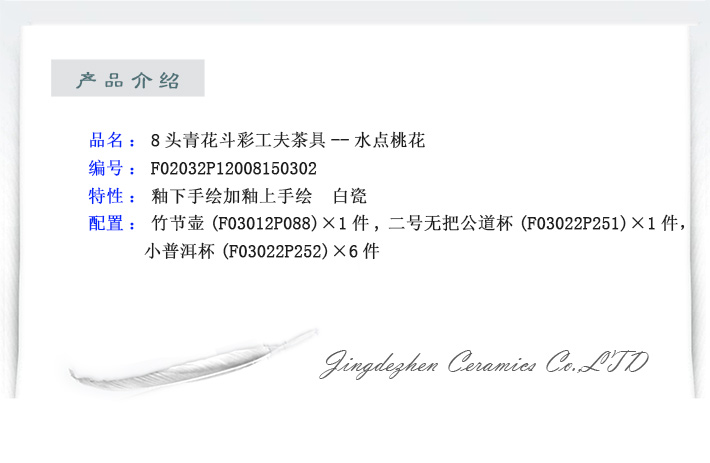 8頭青花斗彩功夫茶具水點桃花