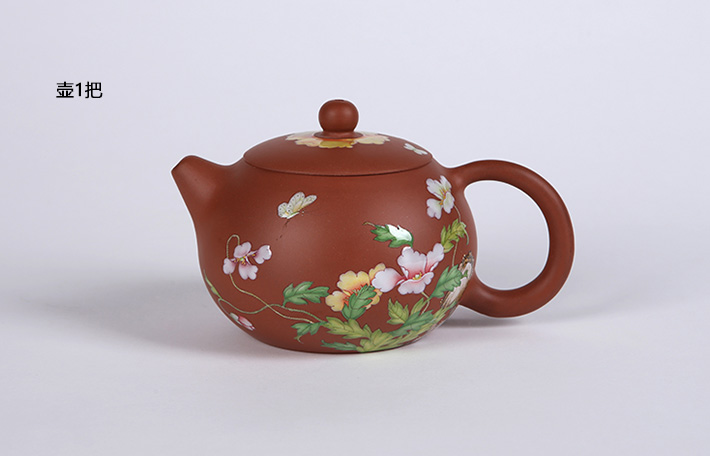 5頭琺瑯彩茶具(蝶戀花)