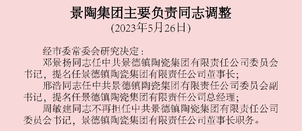 景陶集團主要負責同志調整