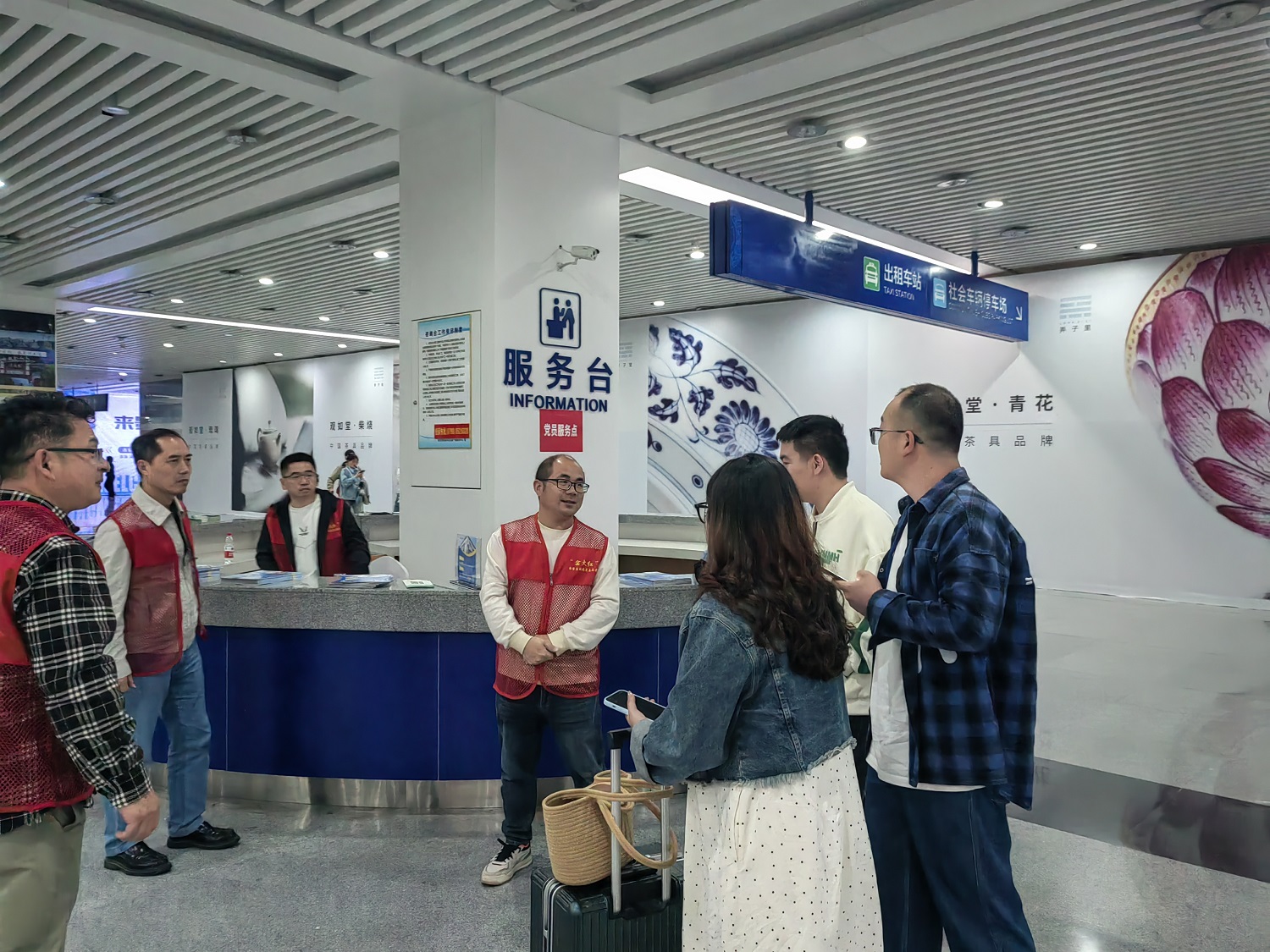 4月30日,五一假期前夕,景陶集團組織70多名黨員志愿者參加市“窯火紅”黨員志愿服務活動。他們身穿紅馬甲,忙碌穿梭在景德鎮北站南廣場,北廣場和羅家飛機場的旅客中,為來景游客指引路線,提行李,推介美食美景美宿,引導車輛有序停放等,送上熱忱暖心的服務,流動的紅馬甲成為一道靚麗的“風景線"。